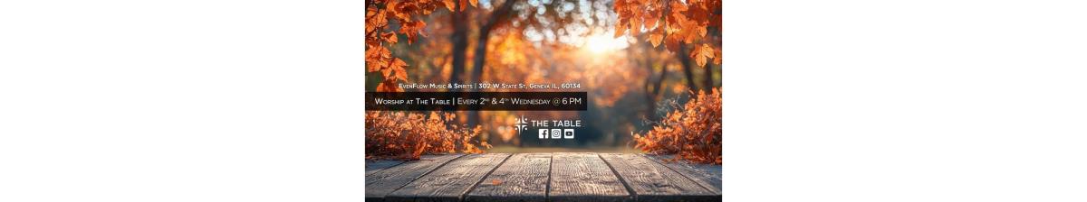 Join us for Worship at The Table at EvenFlow in Geneva, IL! Every 2nd & 4th Wednesday @ 6 PM.
