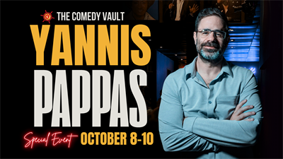 See Yannis Pappas at The Comedy Vault Batavia from October 8-10, 2026!